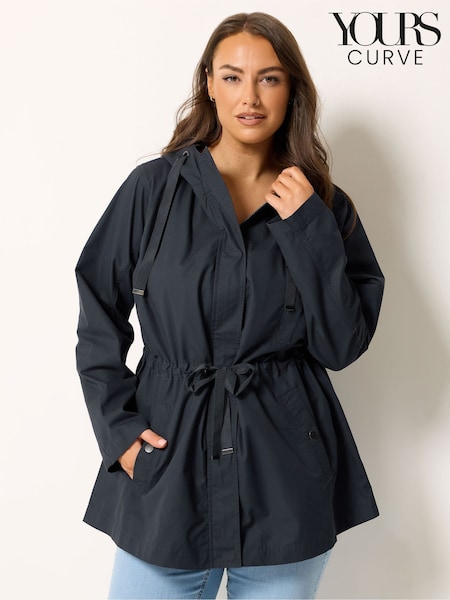 Yours Curve Blue Striped Hooded Jacket