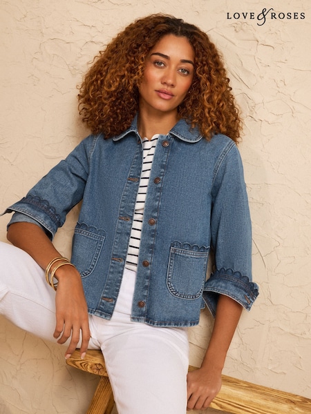 Love & Roses Mid Blue Scallop Trim Denim Jacket