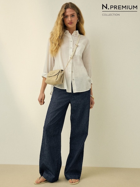 Indigo Blue N. Premium Wide Leg Linen Blend Tailored Jeans