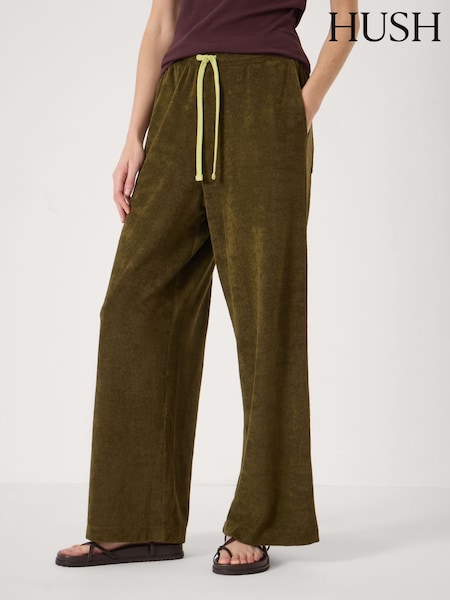 Hush Green Blaire Towelling Side Stripe Joggers