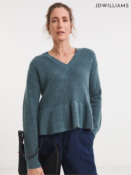 JD Williams Blue V-Neck Peplum Jumper