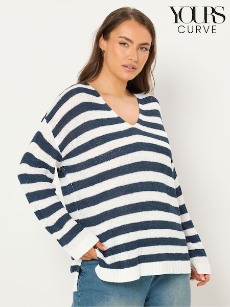 Yours Curve Blue Tape Yarn Stripe Jumper