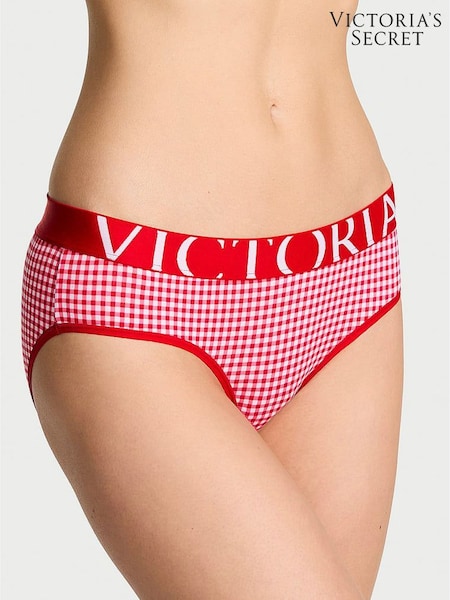 Victoria's Secret Lipstick Red Gingham Hipster Exploded Logo Knickers