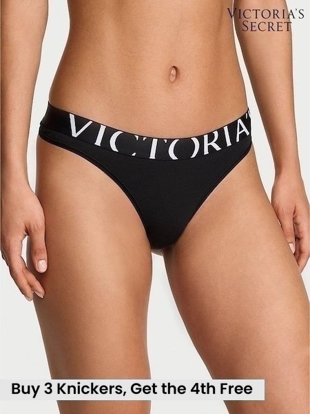 Victoria's Secret Black Thong Exploded Logo Knickers