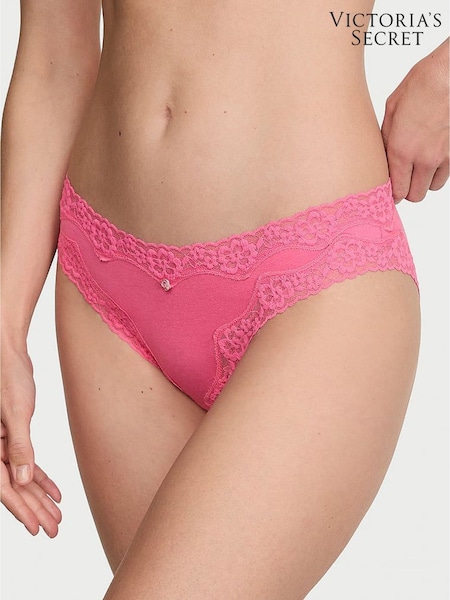 Berry Pink Thong Cotton and Lace Knickers 7 Pack