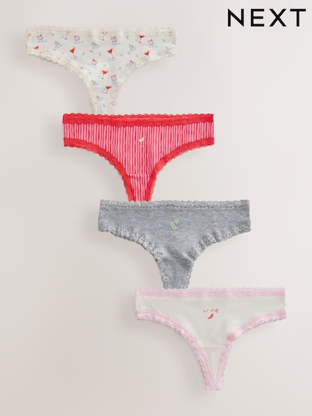 Margarita Thong Cotton and Lace Knickers 4 Pack