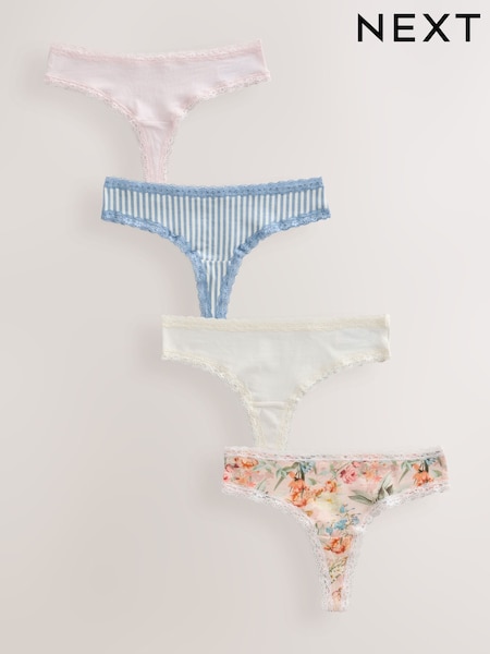 Floral Thong Cotton and Lace Knickers 4 Pack