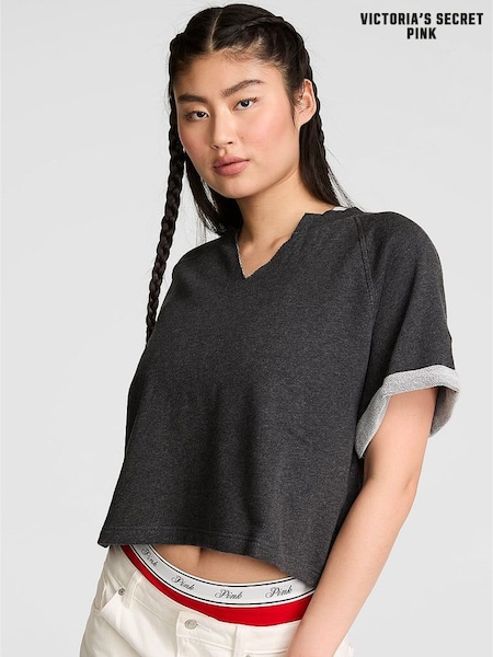 Victoria's Secret Pink Charcoal Heather Grey Terry Crew T-Shirt