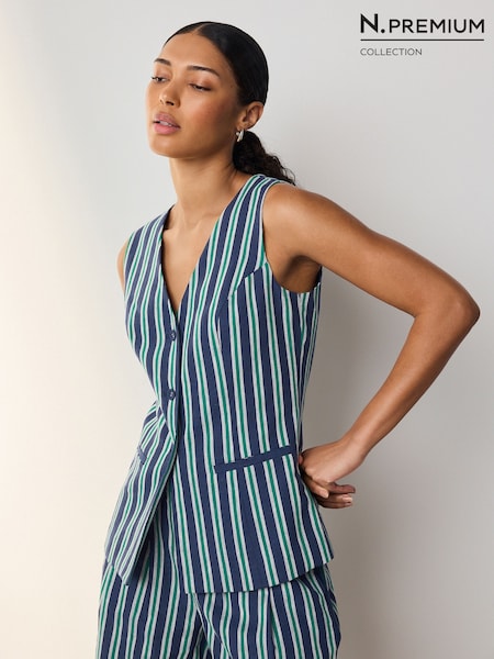 Navy/Green Stripe N. Premium Linen Blend Waistcoat