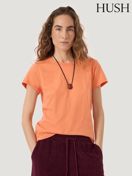 Lauren Ralph Lauren Orange Judy-Elbow Sleeve-Knit T-Shirt