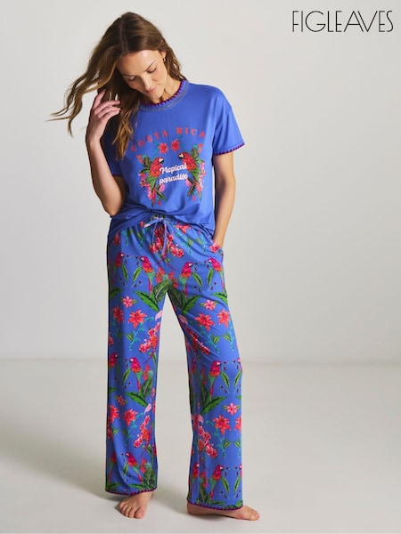 Figleaves Blue Parrot Blanket Stitch Pyjamas