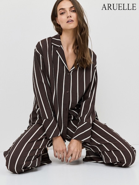 Chocolate Stripe Long Sleeve Short Pyjamas Set