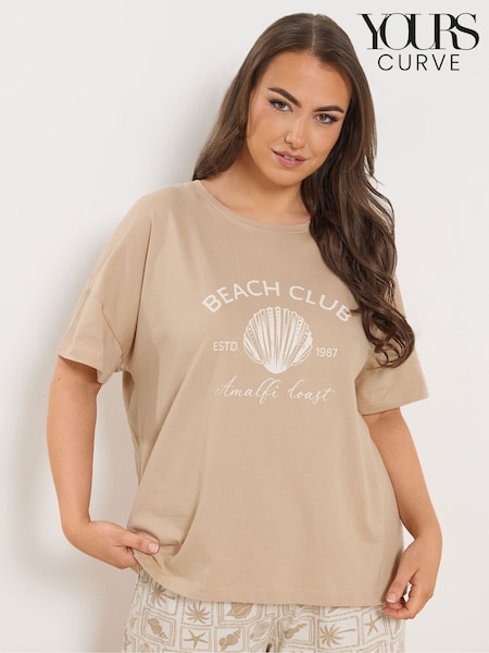 Yours Curve Brown Beach Club Short Sleeve Top & Shorts Pyjamas Set