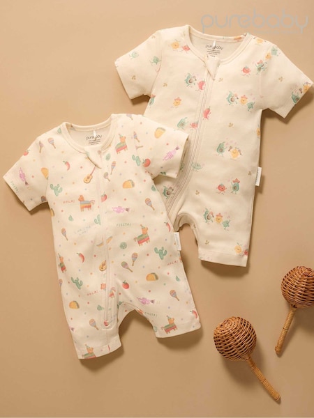 Purebaby Pink Short Sleeve Zip Rompers 2 Pack