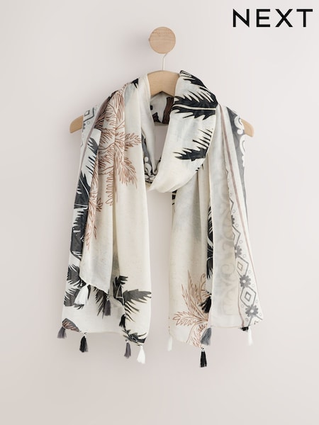 Monochrome Palm Foil Print Lightweight Scarf