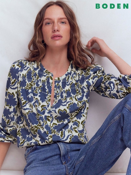 Boden Blue Mya Smocked Jersey Shirt