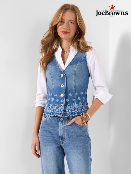 Joe Browns Blue Lola Embroidered Denim Waistcoat