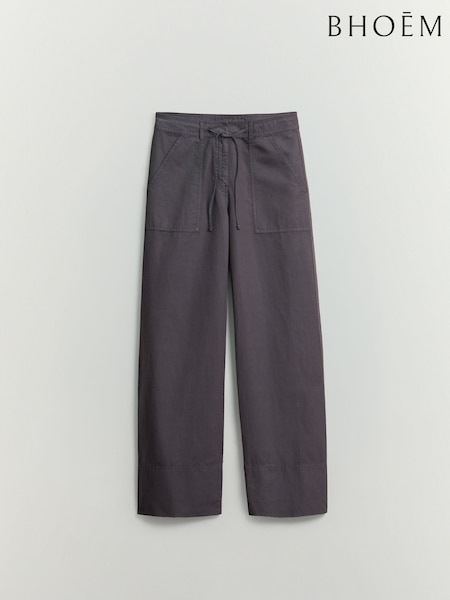 BHOEM Grey Patch Pockets Daily Trousers With Linen