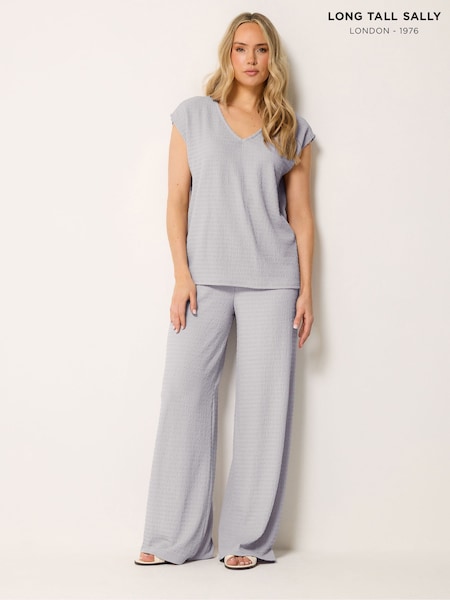 Long Tall Sally Grey Bubble Textured Wide Leg Trousers