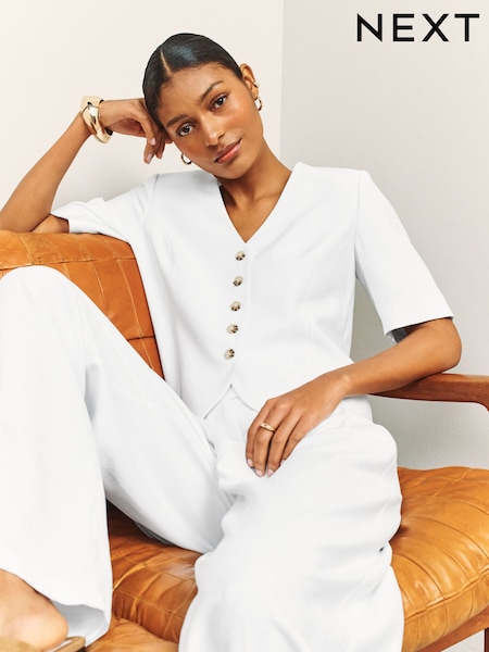 White Short Sleeve Button-Through Top