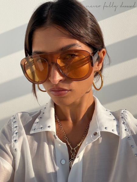 Never Fully Dressed Orange Visor Acetate Sunglasses with Case