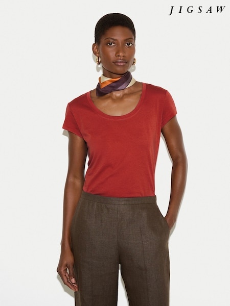 Jigsaw Red Supima Cotton Scoop Neck T-Shirt