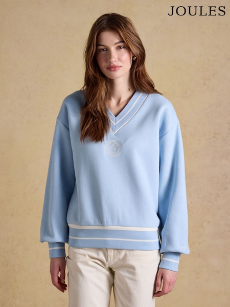 Joules Blue Cotton Rich Embroidered Varsity Sweatshirt