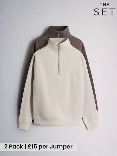 The Set 2 Pack Relaxed Crew Sweatshirt Chocolate Brown/Cream