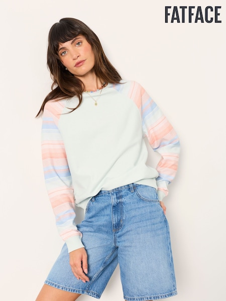 FatFace Light Blue Homespun Stripe Crew Sweat