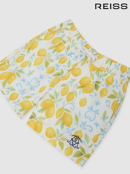 Reiss White Cliff 13-14 yrs Printed Drawstring Swim Shorts