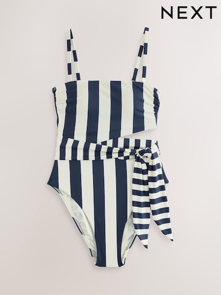 Navy/Cream Stripe Cutout Tie Belt Bandeau Tummy Control Swimsuit