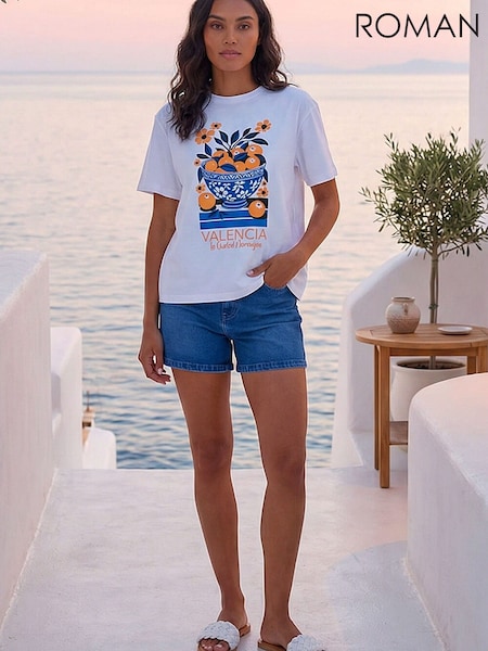 Roman White Cotton Valencia Fruit Print Top
