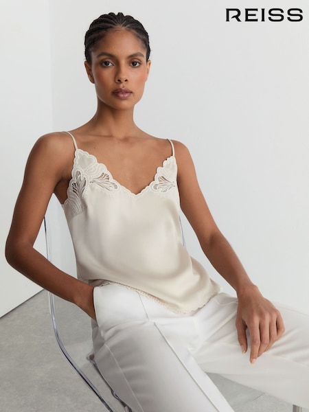 Reiss Neutral Joanie Satin Lace-Detail Cami Top