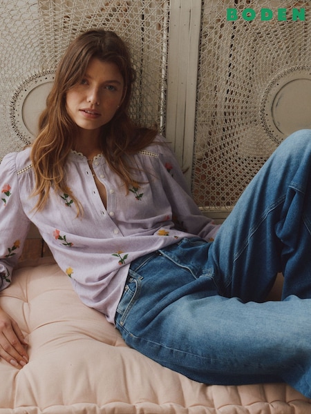 Oliver Bonas Brown Brown Striped Heart Embroidered Long Sleeve Top