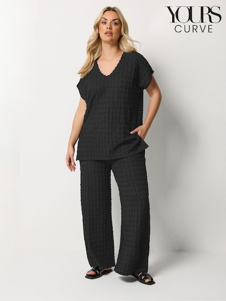 Yours Curve Black Bubble Top & Trousers Set