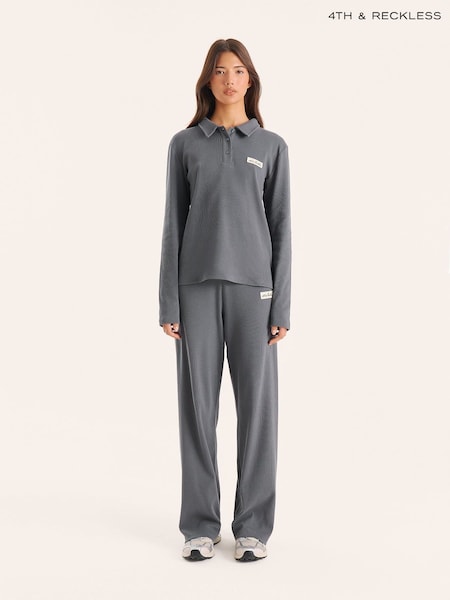 4th & Reckless Grey Liliana Lounge Rib Wide Leg Trousers Co-Ord