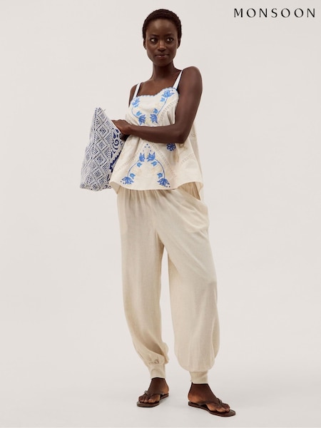 Monsoon Natural Lucy Straight Leg Linen Trousers