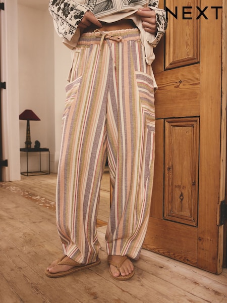 Pink/Orange Stripe Smart Front Linen Blend Wide Leg Trousers