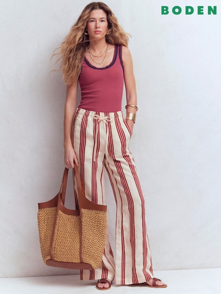 Boden Pink Islington Linen Trousers