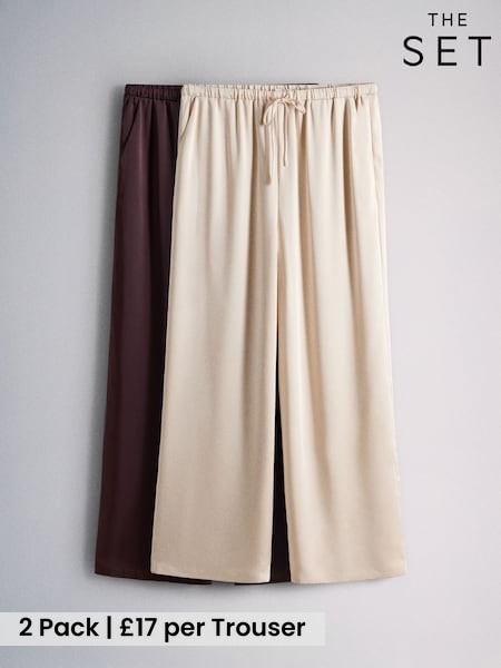 The Set 2 Pack Satin Wide Leg Tie Waist Trousers Plum/Champagne