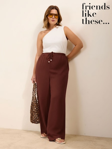 Friends Like These Brown Curve Wide Leg Tie Waist Linen Trousers