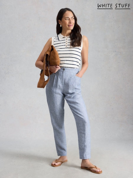 White Stuff Light Blue Rowena 100% Linen Trousers