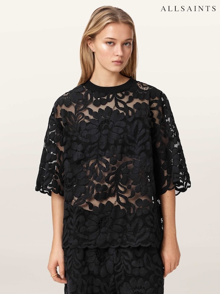AllSaints Black Lenny Lace T-Shirt