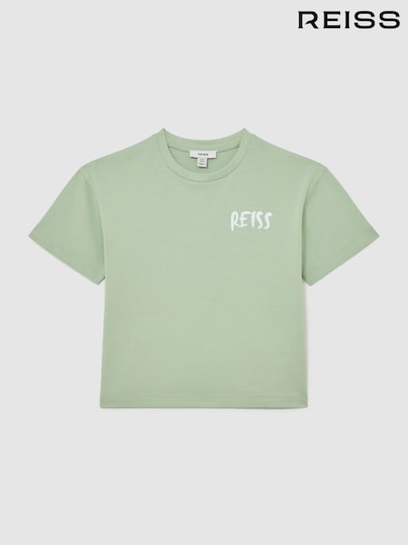 Reiss Ultramarine Green Abbott Cotton Relaxed Logo-Print T-Shirt