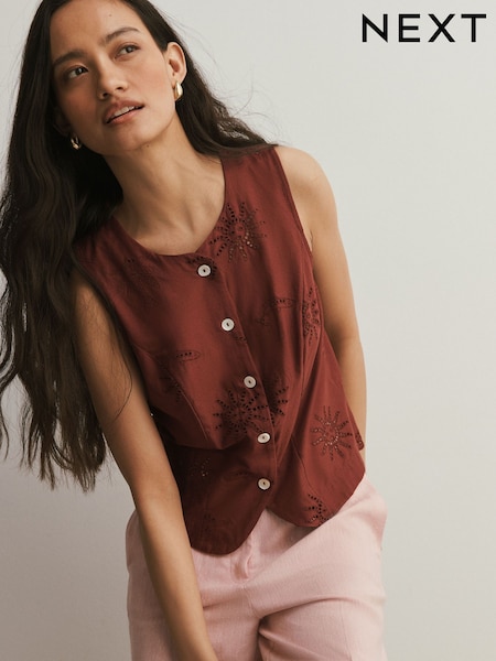 Chocolate Brown Textured Floral Applique Shell Waistcoat
