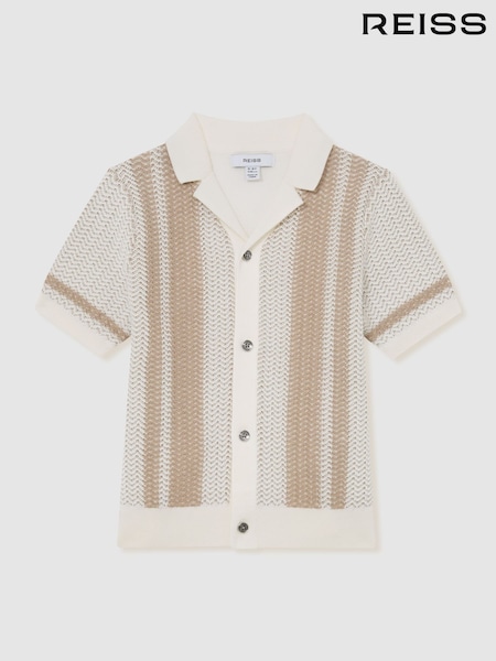 Reiss Off White/Light Camel Victor 9-13 yrs Cotton Textured-Knit Striped Shirt