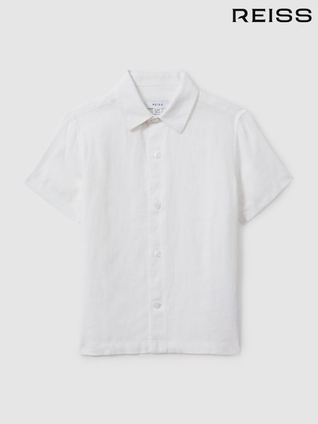 Reiss White Holiday 3-9 yrs Short Sleeve Linen Shirt