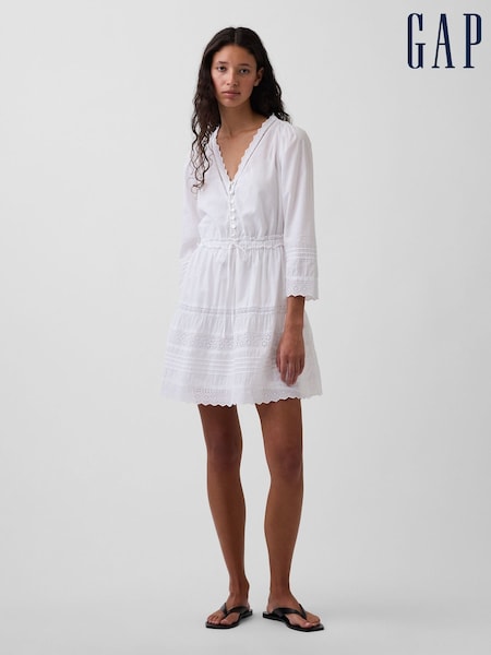 Gap White Lace-Trim Mini V-Neck Dress