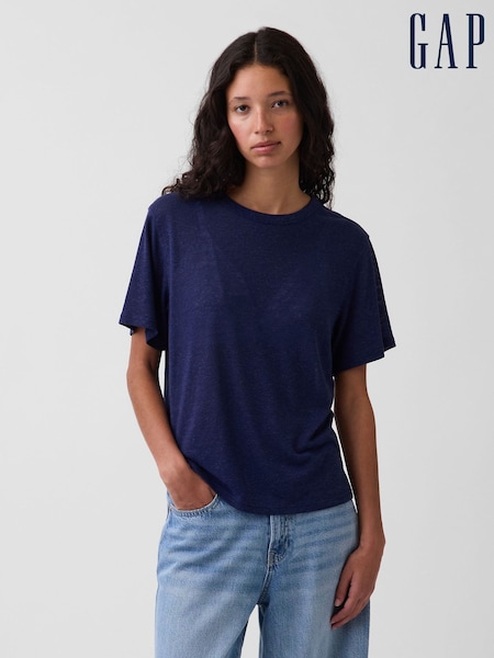 Gap Navy Linen-Blend Relaxed Short Sleeve T-Shirt