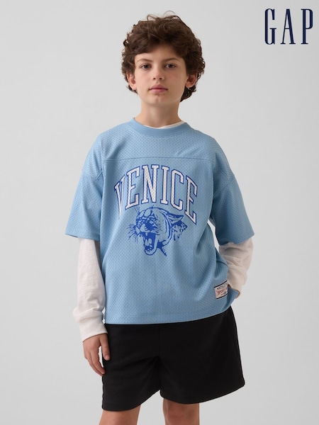 Gap Blue Mesh Oversized Graphic Jersey T-Shirt (4-13yrs)